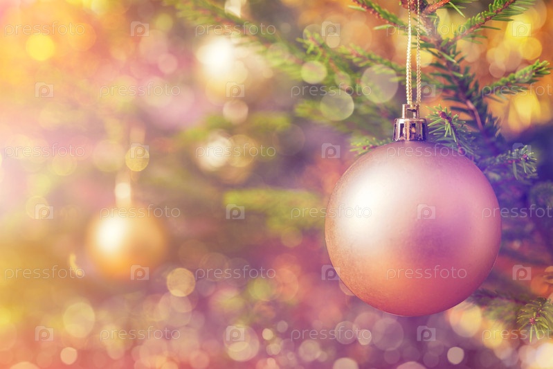 Рождественский фон - украшение рождественской елки на декорированной рождественской елке с размытыми туманными огнями боке и кописпалом