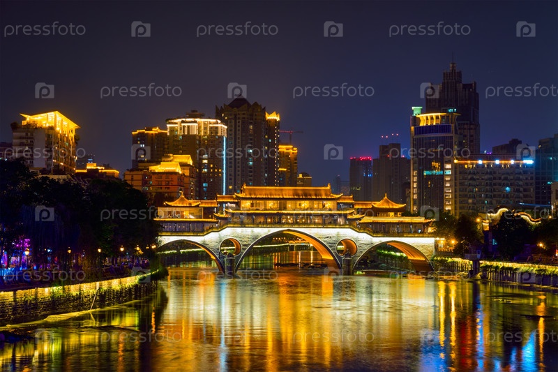 Мост Аншунь ночью, Чэнду, Китай