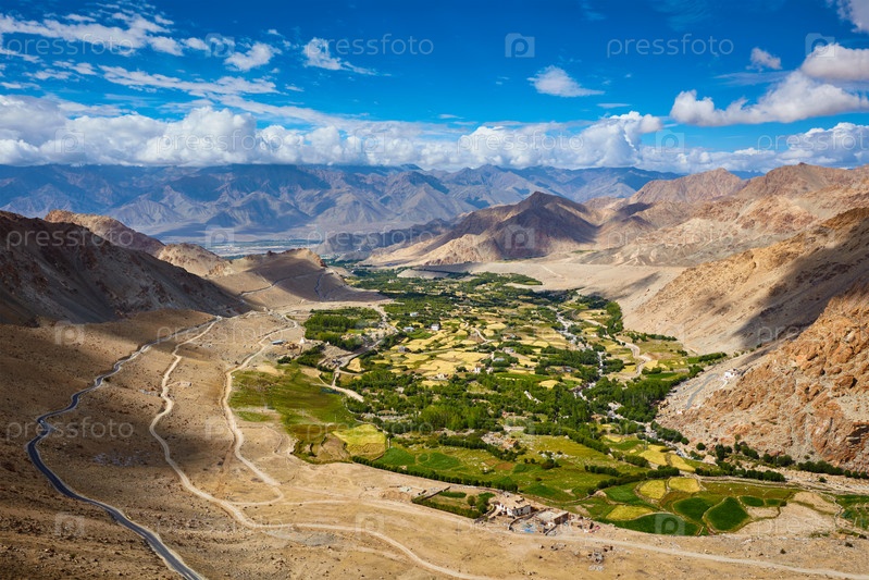 Вид на зеленую долину Инда с высоты прохода Кардунг-Ла, который якобы является самым высоким переходом в мире (5602 м)