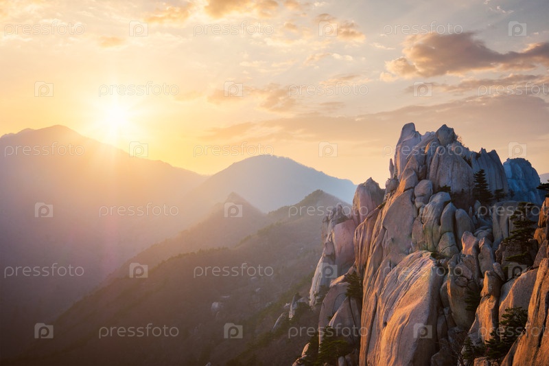 Вид на скалы и каменные образования с вершины Ульсанбави при закате солнца