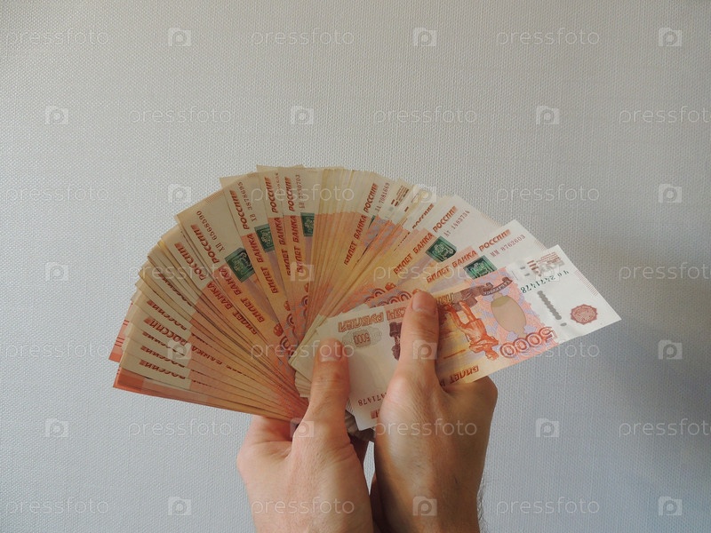Пачка с пятью тысячными купюрами в руках мужчин