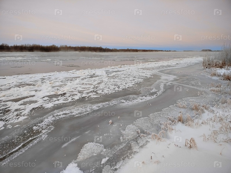 Осенний восход солнца над рекой Иртыш