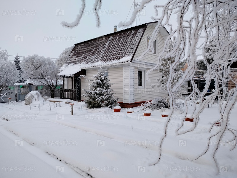 Сельский дом на снежном участке