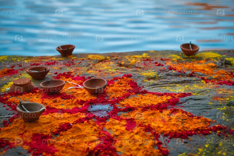 Лампа Pooja Diya на масляной лампе Gats в Джодхпуре, штат Раджастхан, Индия