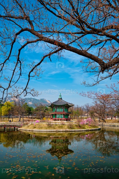 Павильон Hyangwonjeong, Дворец Gyeongbokgung в Сеуле, Южная Корея