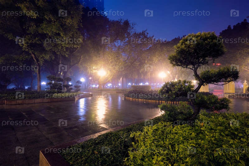 Народный парк Гуанчжоу с туманным туманом ночью