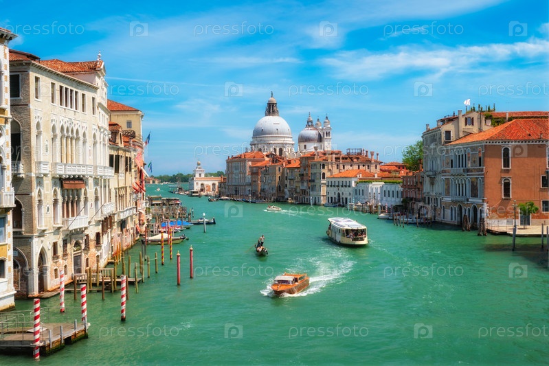 Вид на Большой канал Венеции и церковь Санта-Мария делла Салуте при закате