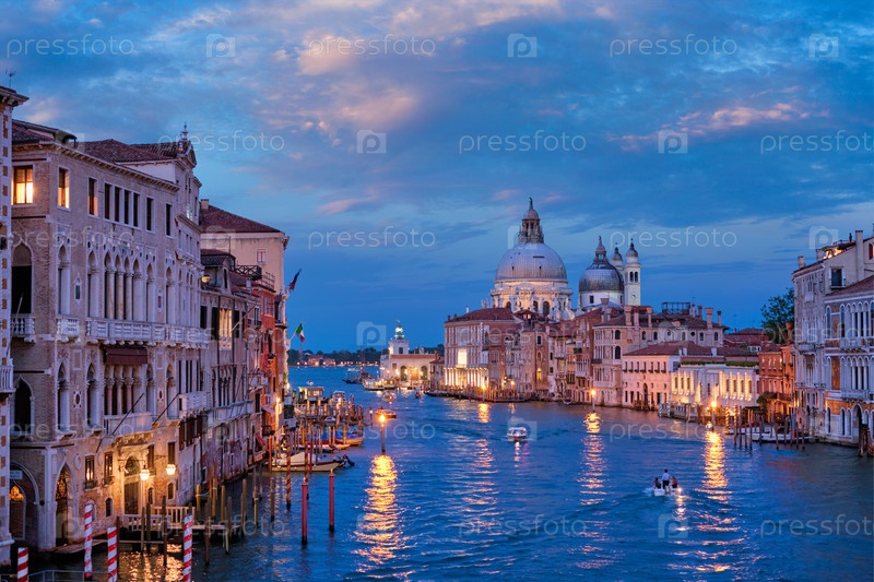 Вид на Большой канал Венеции и церковь Санта-Мария делла Салуте в вечернее время