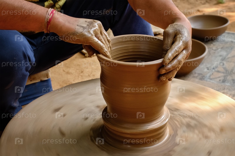 Индийский гончарник на работе, Шилпаграмм, Удайпур, Раджастхан, Индия