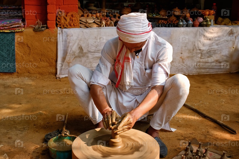 Индийский гончарник на работе, Шилпаграмм, Удайпур, Раджастхан, Индия