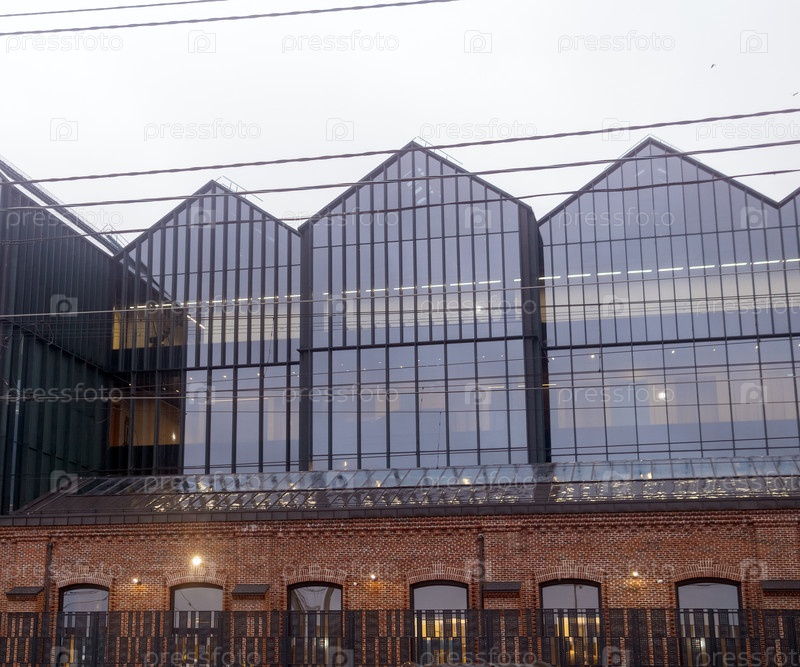 Современная постиндустриальная архитектура, городская, уличная, экстерьерная, дизайн, фасад офисного здания