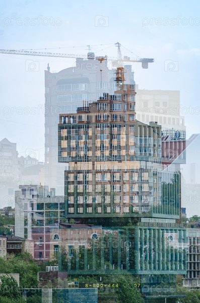 Многослойное, сюрреалистическое изображение городской архитектуры, созданное с использованием техники двойной экспозиции