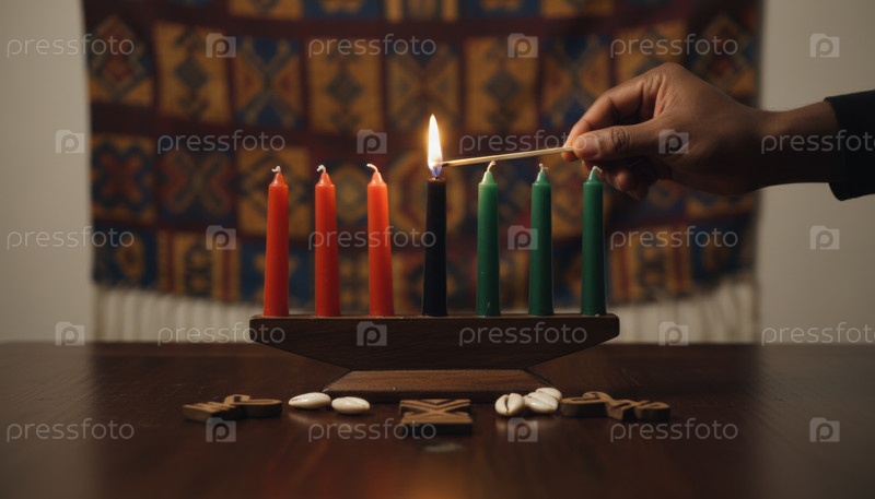 Зажигание свечей для празднования Кванза, символизирующих единство, отражение и культурное наследие в праздничный вечер