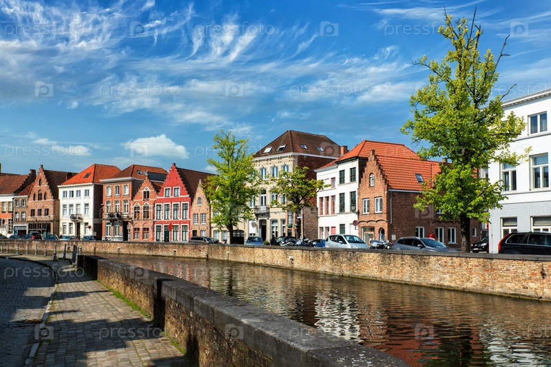 Канал и средневековые дома.Брюгге, Бельгия