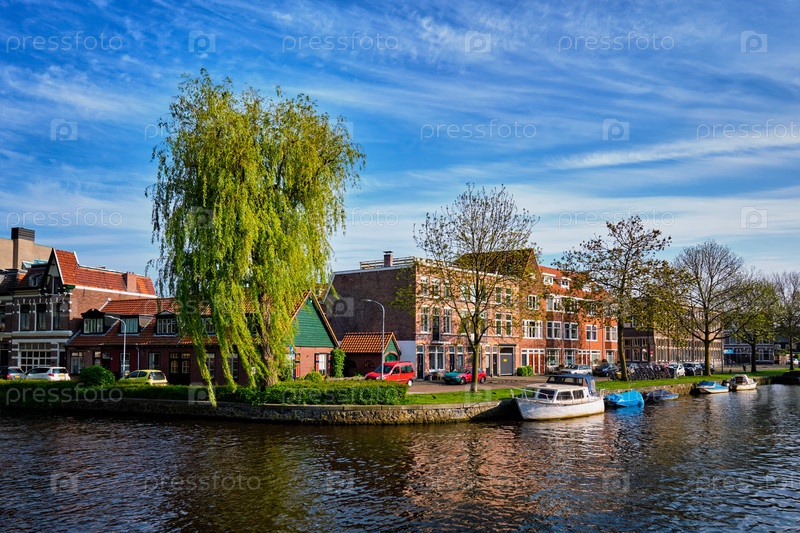 Лодки, дома и каналы.Гарлем, Нидерланды