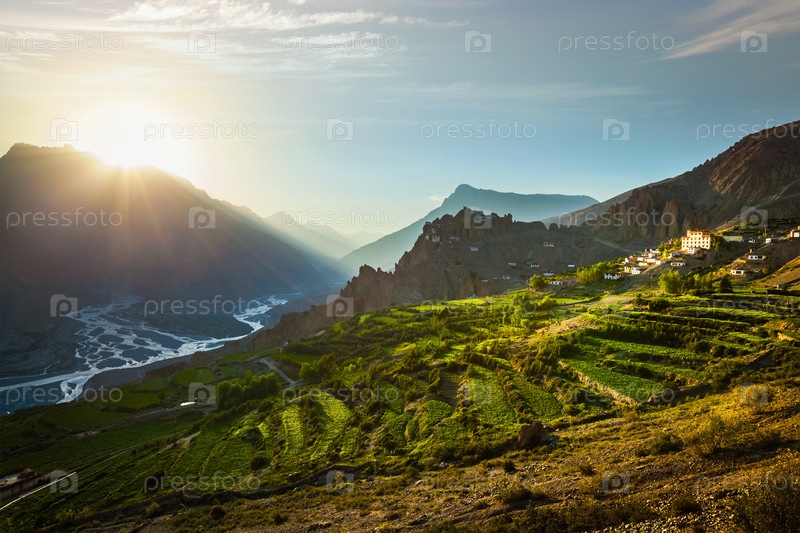Dhankar gompa (monastыrj) of the Skule and the Maiden Dhankar in Gimalayah of Zakate. Dhankar, Spitti Valley, Himachal-Pradesh, India
