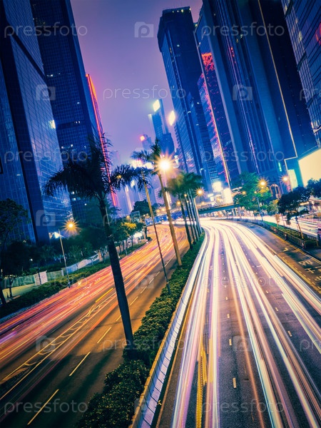 Уличный трафик в Гонконге ночью