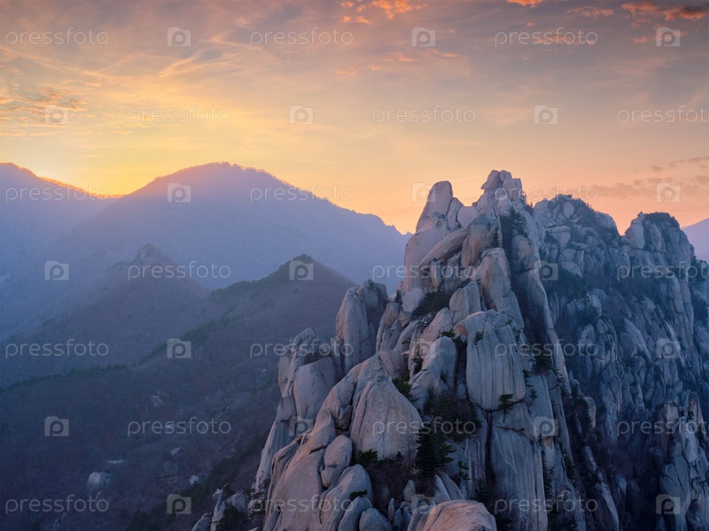 Вид с скалы Ульсанбави на закате.Национальный парк Сеораксан, Южная Корея