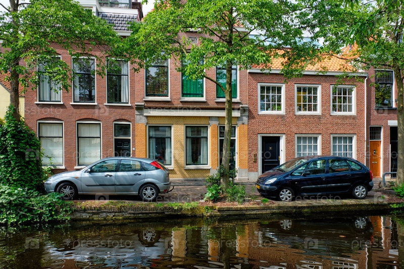 Автомобили на набережной канала на улице Делфт