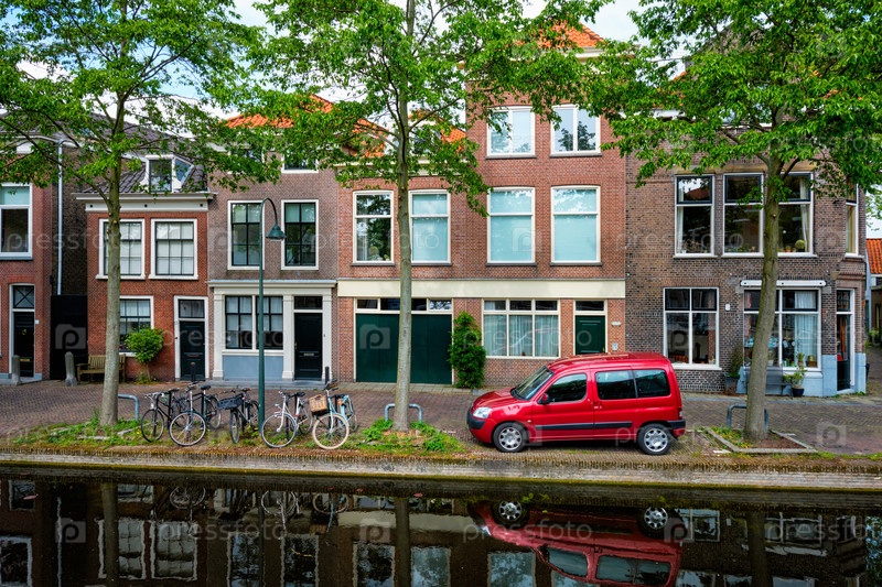 Автомобили на набережной канала на улице Делфт