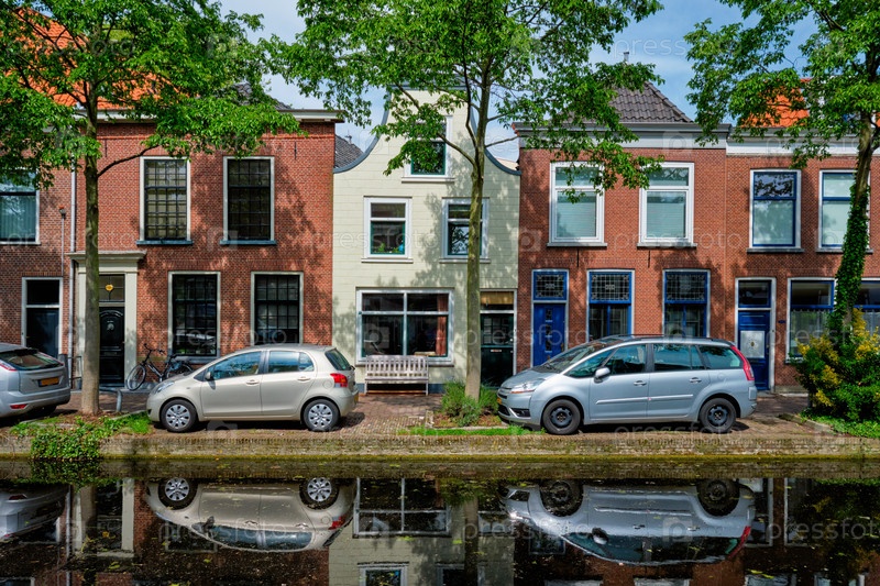 Автомобили на набережной канала на улице Делфт