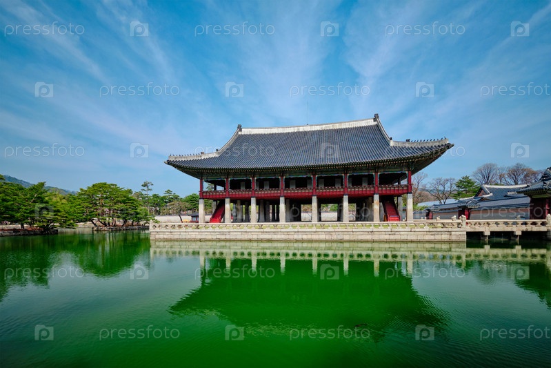 Корейская традиционная архитектура - павильон Gyeonghoeru (Королевский банкетный зал) в дворце Gyeongbokgung