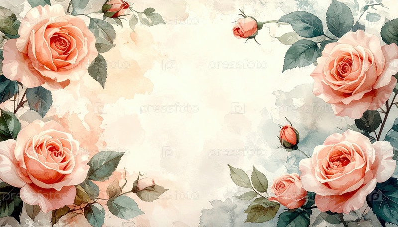 Нежные розовые розы, обрамляющие пустое пространство в стиле акварели, символизируют любовь, красоту и романтический дизайн для поздравительных открыток или приглашений