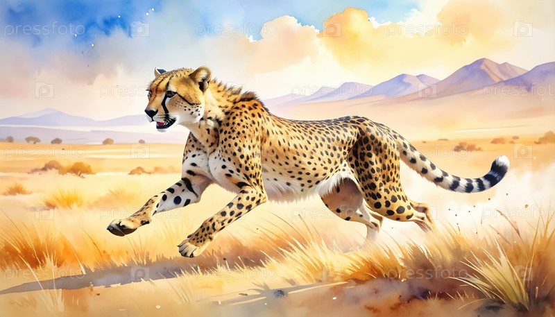 Гепард, бегущий по африканской саване, представляет собой свободу скорости энергии и выживания в фотографии дикой природы и концептуальных изображениях мотивационной силы
