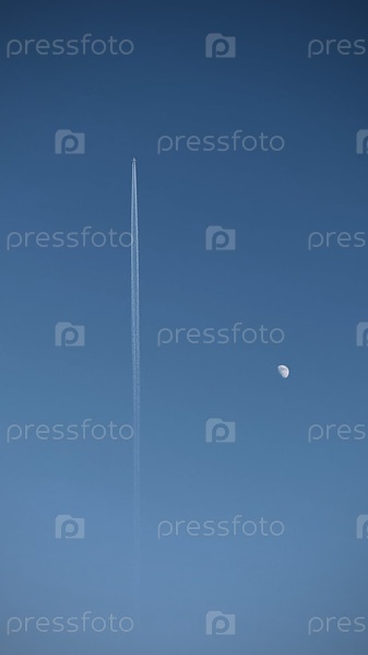 Луна и после самолета в небе