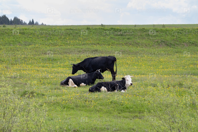 Коровы пасутся на пастбищах