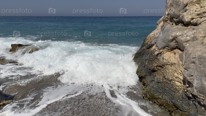 Морские волны врезаются в берег