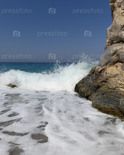 Морские волны врезаются в берег