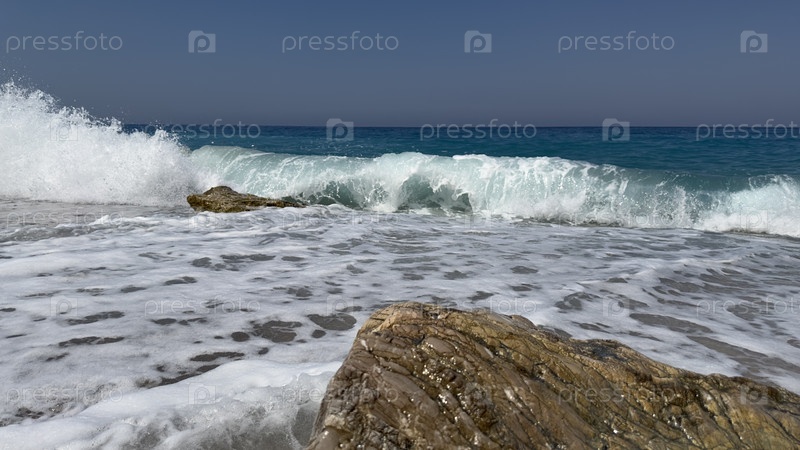 Морские волны врезаются в берег