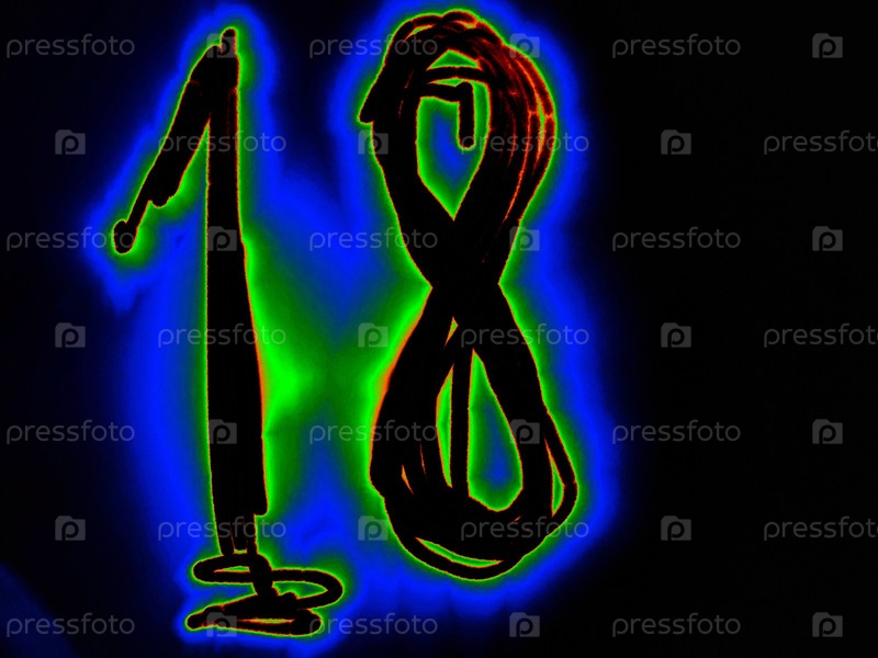 Яркое арабское число 18 - это математическое число, написанное вручную на черном фоне с цветными неоновыми линиями.Черное число светит оранжево-зеленым цветом, создавая вокруг него голубой ореол