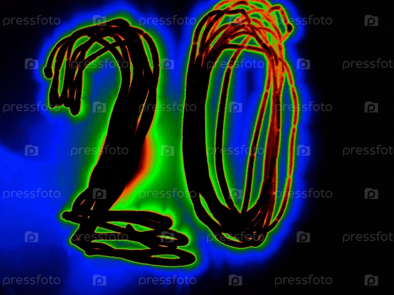 Яркое арабское число 20 - это математическое число, написанное вручную на черном фоне с цветными неоновыми линиями.Черное число светит оранжево-зеленым цветом, создавая вокруг него голубой ореол