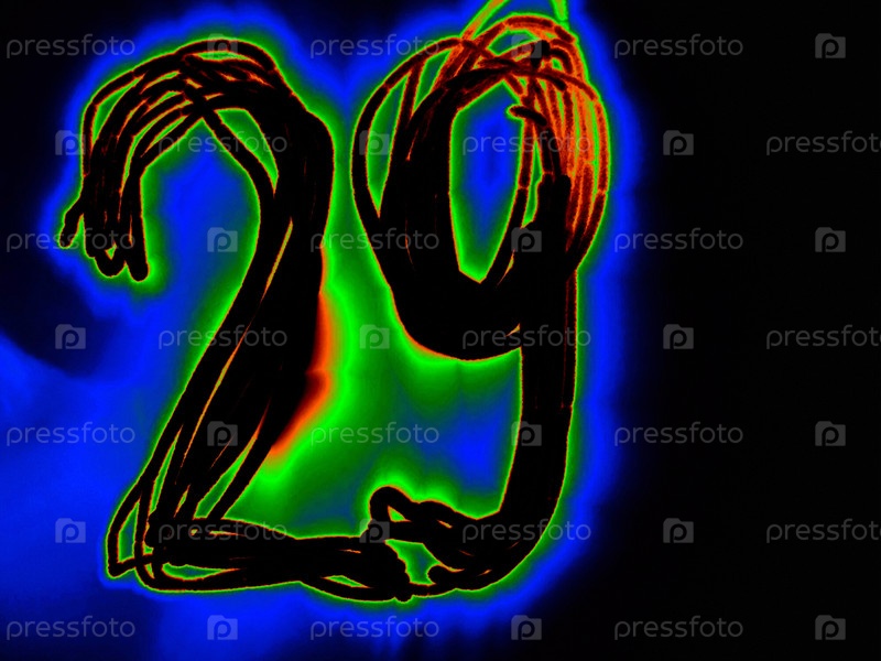 Сияющее арабское число 29 - это математическое число, написанное вручную на черном фоне с цветными неоновыми линиями.Черное число светит оранжево-зеленым цветом, создавая вокруг него голубой ореол