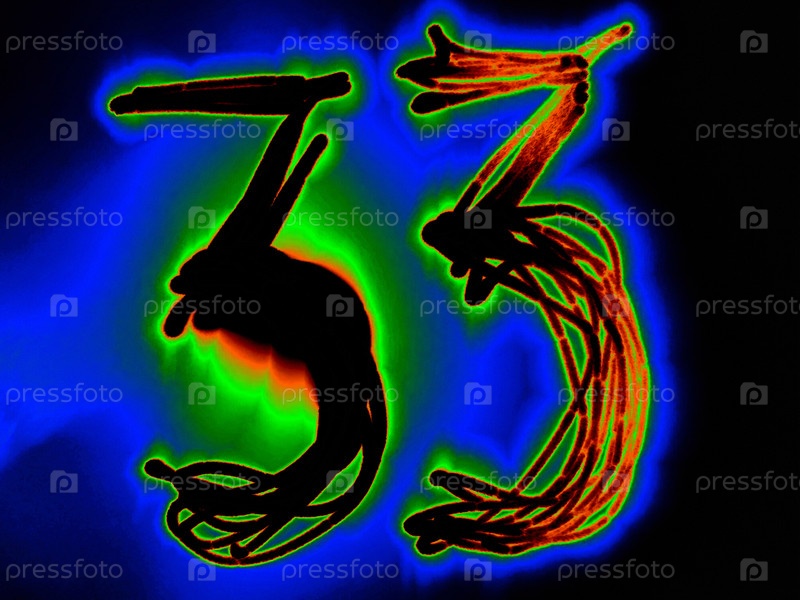 Сияющее арабское число 33 - это математическое число, написанное вручную на черном фоне с цветными неоновыми линиями.Черное число светит оранжево-зеленым цветом, создавая вокруг него голубой ореол