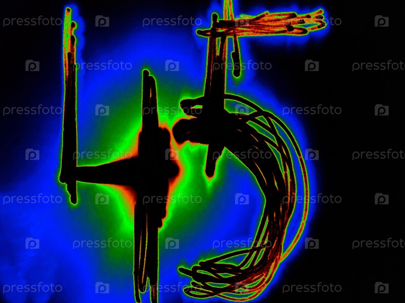 Сияющее арабское число 45 - это математическое число, написанное вручную на черном фоне с цветными неоновыми линиями.Черное число светит оранжево-зеленым цветом, создавая вокруг него голубой ореол