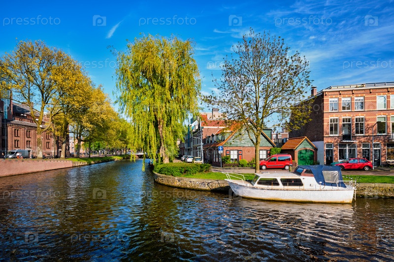 Лодки, дома и каналы.Гарлем, Нидерланды