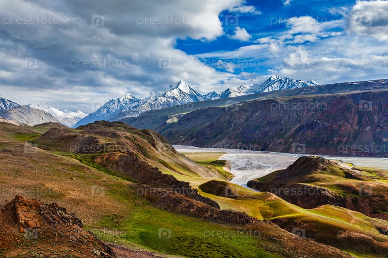 Гималайский пейзаж возле озера Чандра Тал. долина Спити, Химачал-Прадеш, Индия