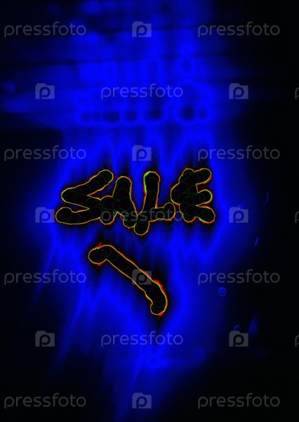 На черном фоне английское слово написано вручную цветными неоновыми линиями.Черные буквы светятся зелено-красным по краям, вокруг них голубой ореол