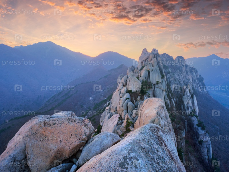 Вид с скалы Ульсанбави на закате.Национальный парк Сеораксан, Южная Корея