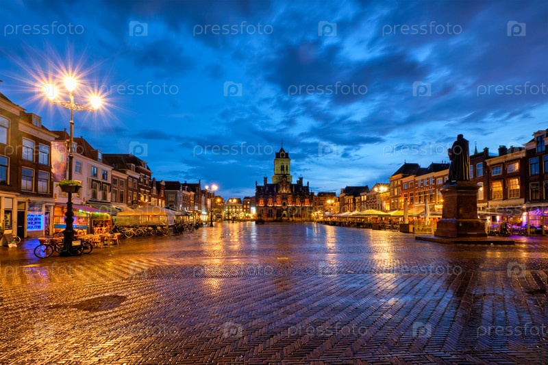 Городская ратуша и рыночная площадь Дельфта Markt с Уго де Гротоусом