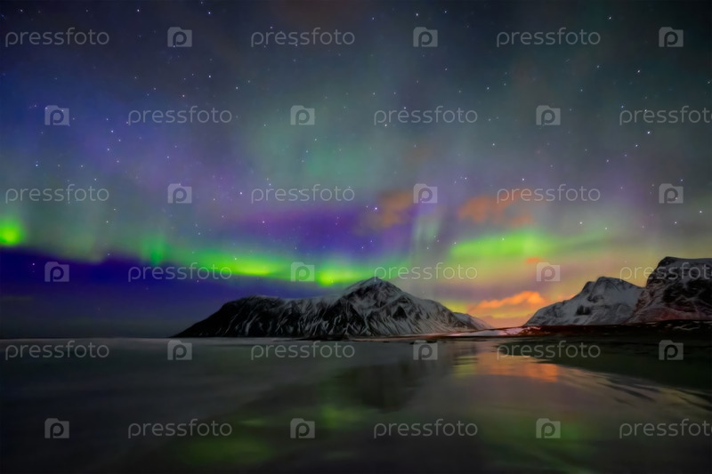 Северное сияние северной луны.Острова Лофотен, Норвегия