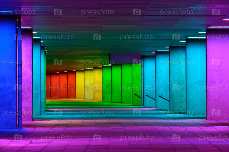 Красочный тоннель с освещенной галереей рядом с Музейным парком, Роттердам, Нидерланды