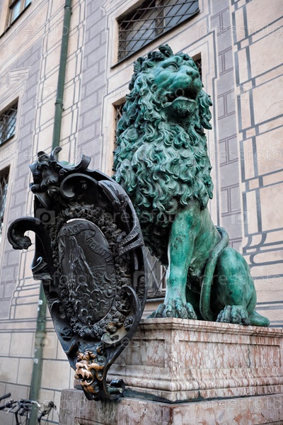 Статуи баварских львов в резиденционном дворце в Мюнхене