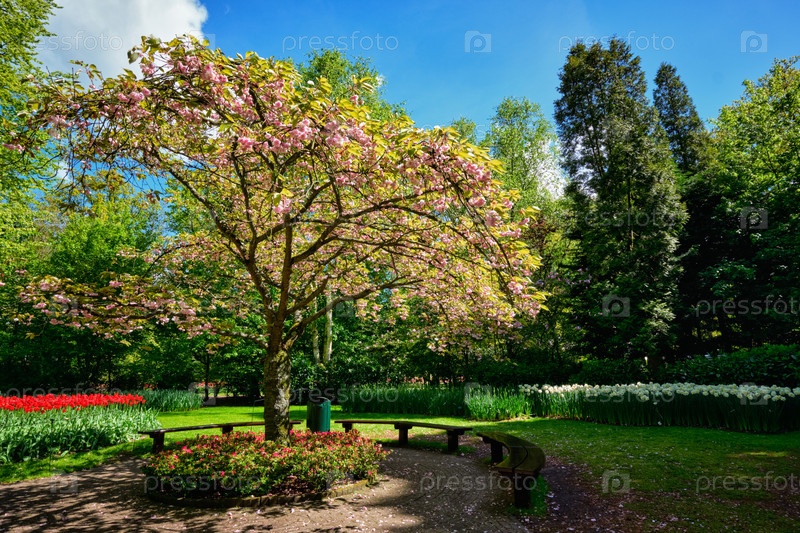 Цветущее дерево в цветочном саду Кеукенхофа, Нидерланды