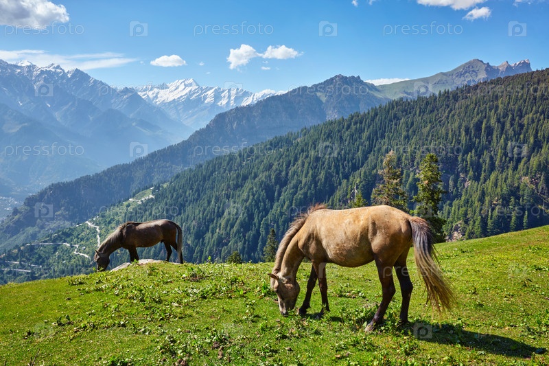Лошади в горах Химачал-Прадеш, Индия