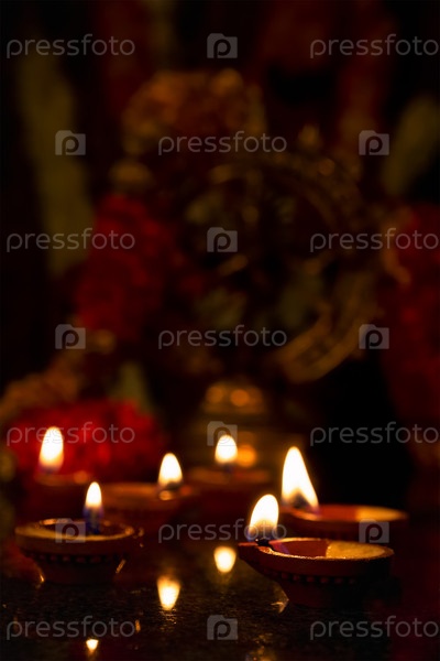 Дивали зажигает масляные свечи с Шивой Натаражей на заднем плане для Маха Шиваратри, Индия