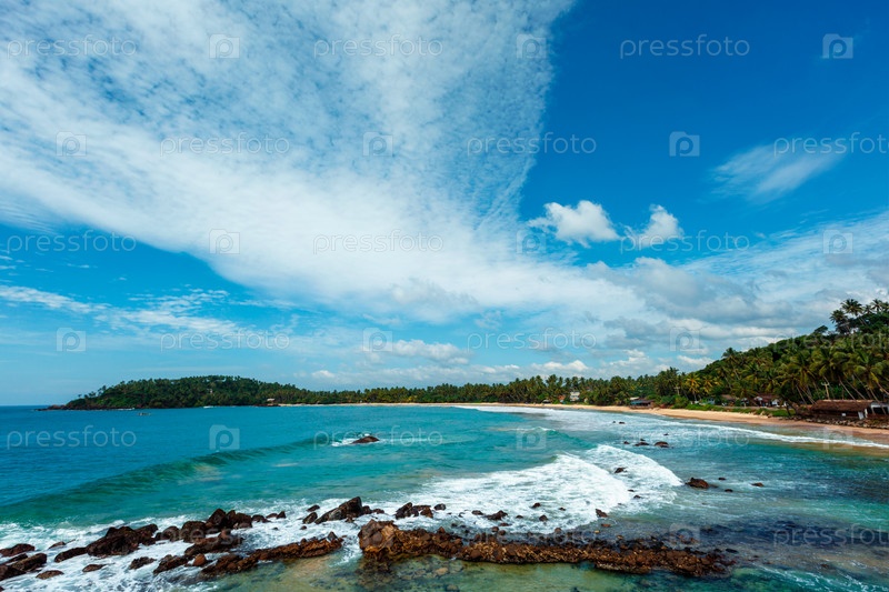 Пляж Мирисса на Шри-Ланке днем с облаками